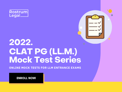 Are you planning to study Master of Laws from one of the top National Law Schools in India? Enroll today in the CLAT LLM 2022 Mock Test Series by RostrumLegal. Prepare for CLAT 2022 & other Important LLM Entrance Exams on RostrumLegal. Enroll today and speed up your CLAT PG (LLM) Preparation! Mock Test Breakup: 25 Mock Tests for CLAT PG 2022. 5 Mock Tests for AILET PG 2022 5 Mock Tests for ILI LLM Entrance Exam 2022 5 Mock Tests for DU LLM Entrance Exam 2022 Mock Test Features: Video Analysis of Mock Tests. User-friendly online testing system. Detailed Test Analytics and reports for each mock. All India rankings for individual mock tests. Online Discussion Forum. Notifications about Job Openings via CLAT. Need help? WhatsApp us on 9844035831