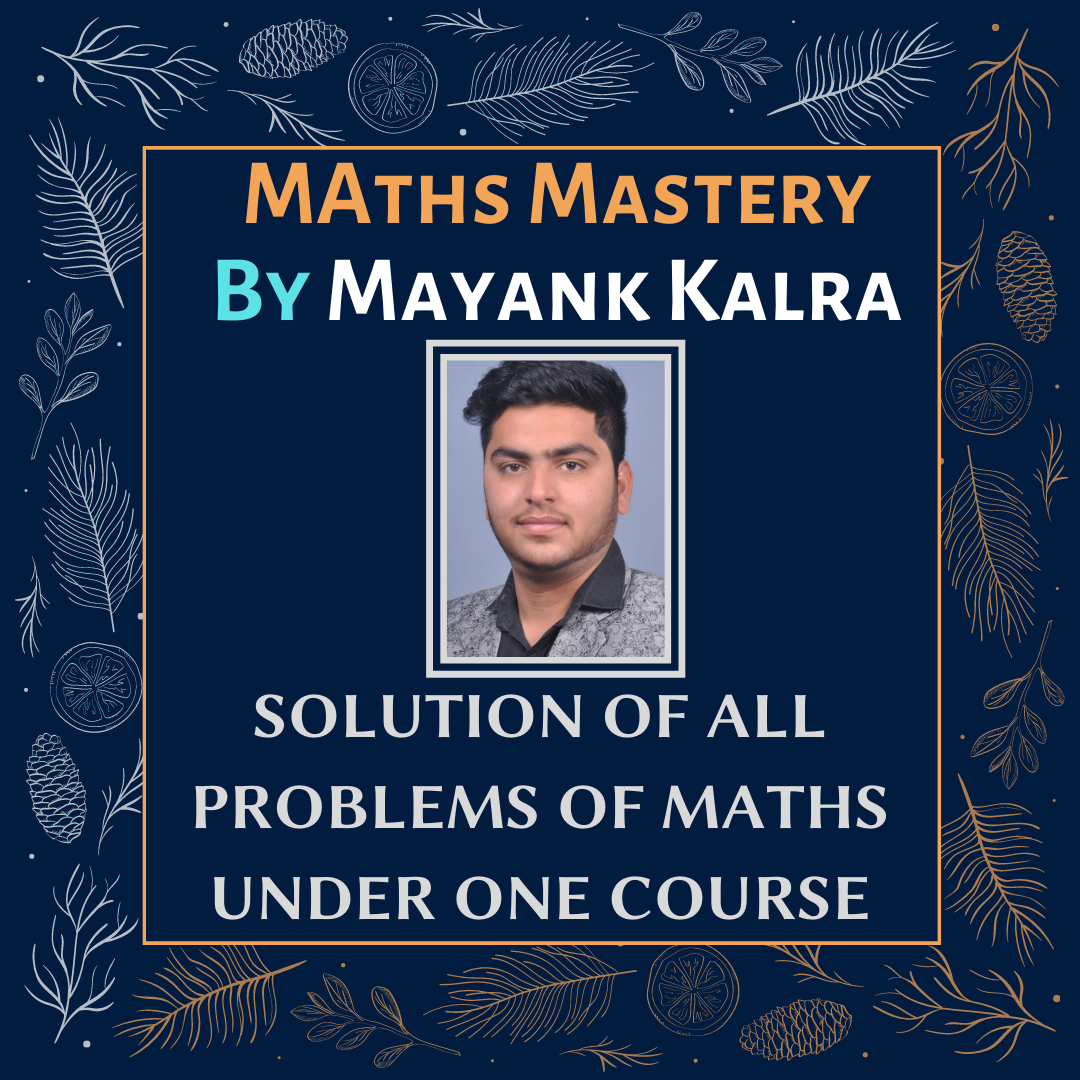 From Meri Atma Tuje Hmesha Sataygi to MATHS ..... This course can be done by anyone whose age is greater than 10 years *Introduction* This course have designed for those who are suffering in their educational journey because of maths. After this if you are a school student you will not have to suffer because of maths, if you are college student your marks will not cut because of maths, if you are teacher you will not have to shame in class because of maths problem. *who can do this* 1. School student 2. College student 3. Teacher 4. anyone who is getting afraid from maths 5. anyone after the age of 10 years *what you will get* 1. 100 mistakes you do in maths 2. 21+ chapters 3. 90+ lessons 4. 20+ hours content 5. Mayank kalra mentorship 6. Lifetime access 7. Many more..... *Why should we do this* 1. If I am a school student I must do because by the age of 16 I will have passed class xth and i have fear to select maths and If I am interested in technology our education system would not allow us to do engineering from IIT so you need Maths. 2.If I am college student I should do it because in many subject there are so many topics related to maths so for getting good grades and for getting good skills I should do it. 3. If I am a teacher I can solve the problem of thousand of students related to maths even though I am not from the field of maths. 4. Anyone who is more than 10 years of age can do this. For More details call at +918005801646
