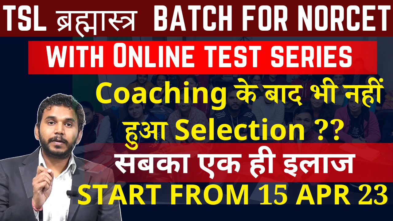 Welcome in TSL Nursing Coaching Delhi. The Details of TSL Bhramastra Course for NORCET are as Follows. 1. Video Class and Online Test uploading will start from 15/04/2023. 2. This batch has validity of till the NORCET-23 Exam. 3. All The Total Content and Tests will be uploaded in 3-4 months in phase wise manner. 4. This Course includes the Recorded Classes and There will be some live Problem solving classes at the end of uploading the subject wise video lectures. The Details Content of Batch are as follows 1. Video Lectures:- FON Theory – 20 Hrs FON Practical- 30 Hrs (30 Practical Class) CHN – 15 hrs OBG – 20 hrs Pedia – 25 hrs Psychiatric Nsg :- 20 Hrs MSN:- Endo+Renal+Resp+Cardio+Musculo+GIT+Onco+Blood +Neuro+ENT Pharma – 15 hrs Others :- 20 Hrs ( Research +Micro+Nutrition) Non Nursing – 30 hrs (Maths+Reasoning) 2. Question Practice :- Online Test Series :-(15000 MCQ) Total 100 Tests (Start on 15/04/2023) Subject Test – 50 (100 MCQ)- with Rational Major Test – 50 (200 MCQ) – with Rational Topic Wise Question :- 700 MCQ (70 topic)-(Video Solution) 300 FON Special MCQ(Video Solution) 300 Image Based MCQ 3. Question Practice :- Book Question Solution:-(3700 MCQ) Saunders (All Imp MCQ)- Video Solution -800 MCQ Mosby (All imp MCQ) – Video solution – 1200 MCQ Kaplan (All MCQ)- Video solution -500 MCQ PR Yadav (OBG+CHN)-1200 Live Problem Solving Class:- 7 Days Class (4 hours in A Day) – After Completion of Each SUB Key Dates :- Course start- 15/APR/2023 Course End – 30/July/2023 Course Validity – Till NORCET-23 Exam Fee Details :- Early Birds Reg:-Rs 1999/-(Till Date – 15/APR/23) (Rs500 OFF for TSL Regular Students + SGPGI/RML Crash Course students) On Time Reg :- Rs 2499/- (Till Date – 15/05/2023) Late Comers Reg:- Rs 2999/- (After 15 May 2023) For More Details feel free to call us TSL Helpline no 8505968383 (9 am to 5 PM)