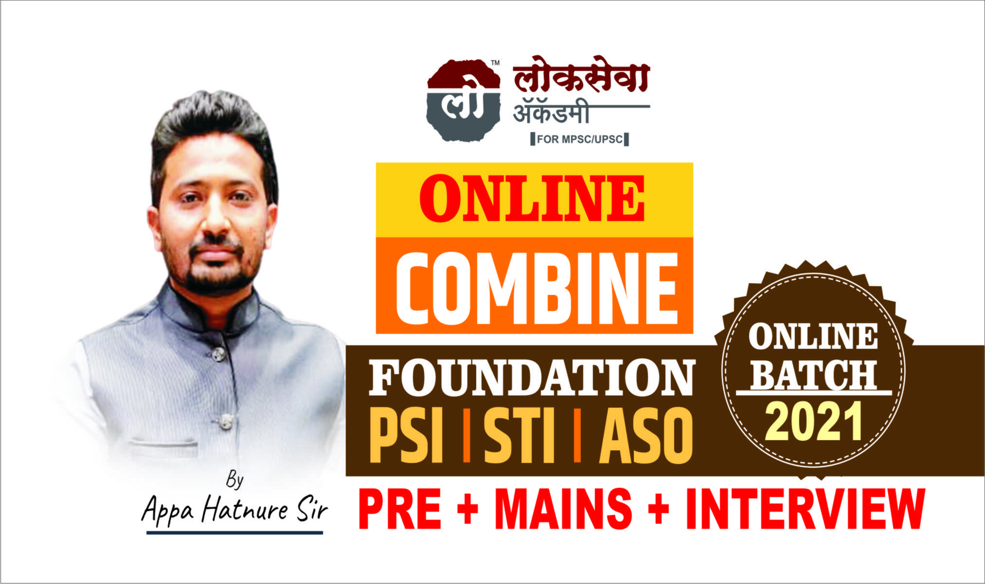 COMBINE (Pre+Mains+Interview) FOUNDATION BATCH 2021 (PSI/STI/ASO) By Appa Hatnure Sir प्रत्येक दिवसाच्या Time Table सह..... Admission Start:- 21 April 2021 Batch Start 1 May 2021 * लोकसेवा पब्लिकेशनची पुस्तके 50% सवलतीच्या दरात *Text book (State Board+NCERT) शिकवले जातील. * SYLLABUS मधील प्रत्येक TOPIC (Exam Oriented) शिकवले जाईल. * सर्वच Concept Clear केले जातील. * 100 सराव पेपर्स होतील (प्रत्येक topic वर...) * सर्वच परीक्षेतील सर्व 21000+ प्रश्न स्पष्टीकरणासह घेतले जातील * प्रत्येक topic चे आप्पा सरांचे Notes मिळतील. * जवळ-पास सर्वच विषय स्वतः मी आप्पा सर घेतील. * पूर्व होण्याअगोदर पूर्व + मुख्याचा 80-90% Syllabus Maximum Output सह पूर्ण केले जाईल. *ज्यांची पुन्हा pre उडत आहे.(तेच-तेच स्कोअर) त्यांच्यासाठीच खरच सुवर्णसंधी! Batch Duration-1 YEAR watch Time :- 6 times All videos are recorded aslo have offline download options