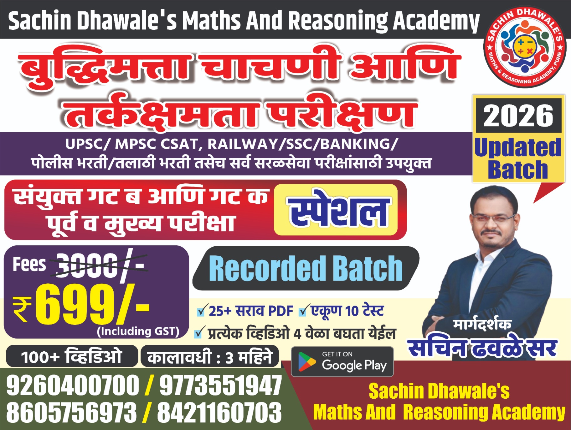 लॅपटॉप access नाही फक्त तुम्ही मोबाईल वर वापरू शकता नोट :- कोणत्याही कोर्स चा टाईम वाढून भेटणार नाही UPSC-MPSC CSAT, PSI / ASO / STI Pre & Mains, EXCISE / TAX / CLERK-Pre & Mains, Railway / SSC / Banking - Pre & Mains, सरळसेवा - पोलीस भरती, शिक्षक अभियोग्यता , माध्यमिक शिष्यवृत्ती , तसेच सर्वच स्पर्धा परीक्षांसाठी उपयुक्त