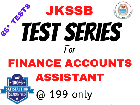 85 tests 8 PORTIONS * 5 Sectional TESTS EACH portion = 40 tests 10 full length tests topic based each section =35 tests = TOTAL 85 tests 10 FULL LENTS TESTS @ 199 ONLY. JKSSB FAA TEST SERIES IF NOT TODAY THEN NEVER Click to purchase https://xhzxw.courses.store/74606?utm_source%3Dother%26utm_medium%3Dtutor-course-referral%26utm_campaign%3Dcourse-overview-webapp Download jk exams application. https://play.google.com/store/apps/details?id=co.jorah.xhzxw General Knowledge with Special Reference to J&K UT 30M Accountancy and Book Keeping 30M General English10m Statistics10m Mathematics10m General Economics10m General Science 10m Knowledge of Computers 10m