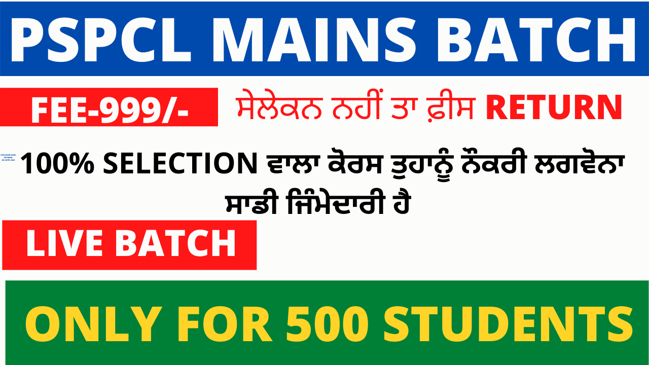 PSPCL+PSTCL BATCH-DAILY LIVE CLASS 500 SEATS